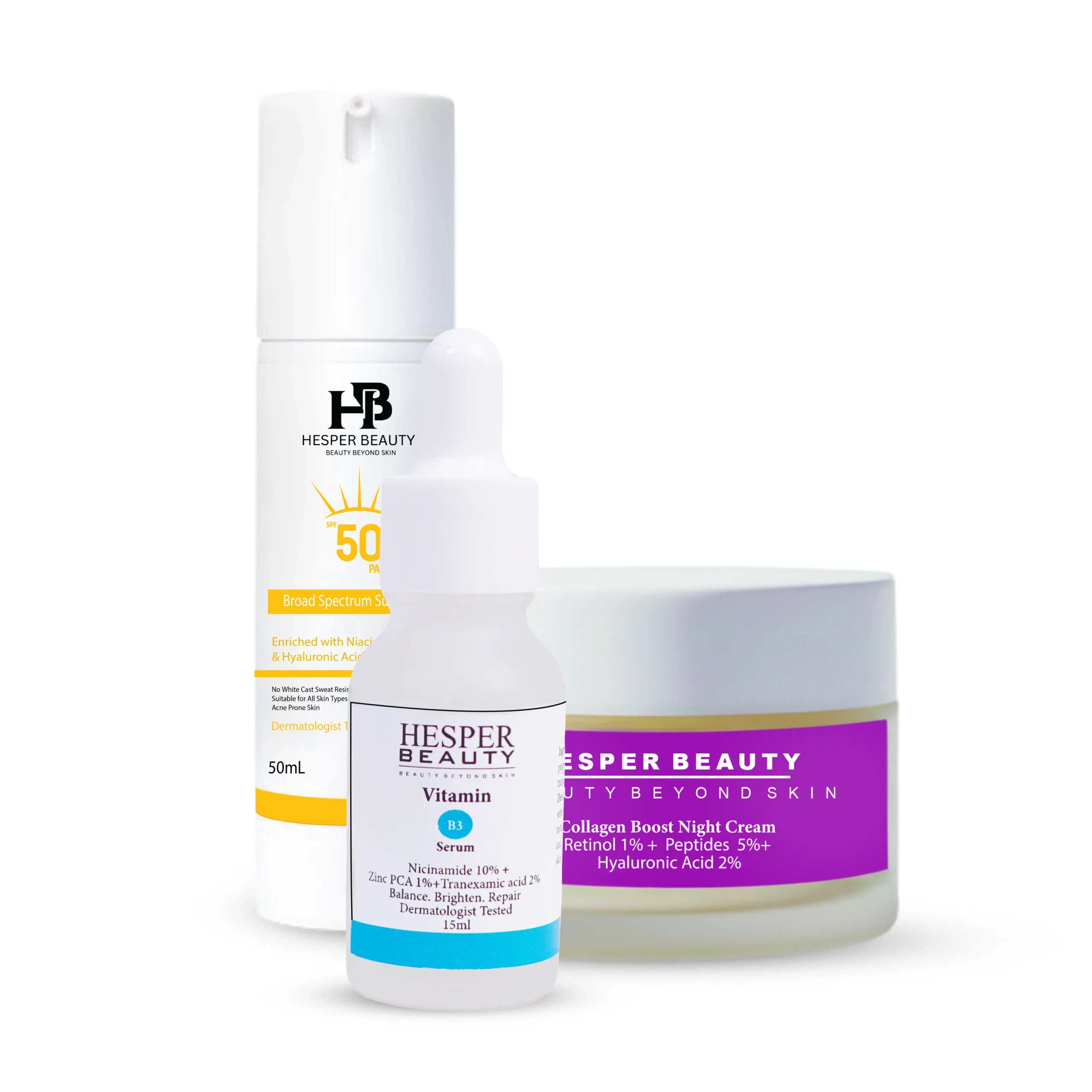Vitamin C is a powerful antioxidant that brightens the skin, evens out skin tone, and helps fade dark spots. It also supports collagen production, which keeps skin firm and youthful-looking.
